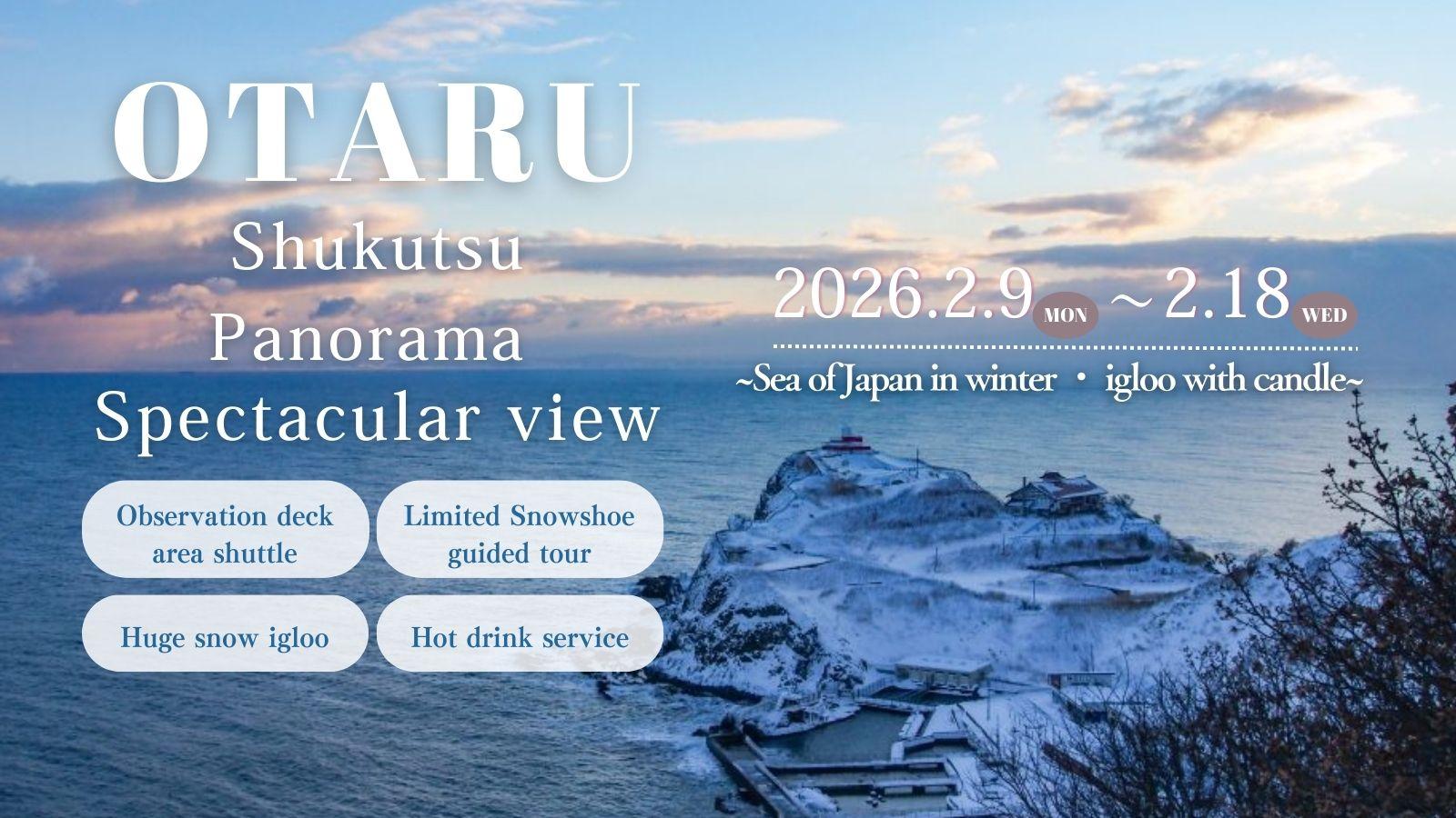 Registration for the event will take place near the first parking lot of Otaru Aquarium, and a guided snowshoe tour will be held. You will walk on snowshoes along a normally inaccessible course, enjoying the fantastic winter scenery of Shukutsu as you make your way to the observation deck. Once you arrive at the observation deck, you will be able to enjoy the snow huts and refreshments that have been set up.